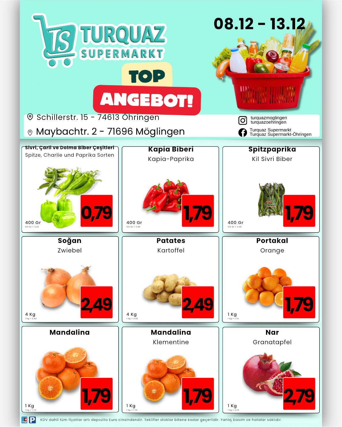 Im Turquaz Supermarkt erwarten Sie täglich frisches Obst und Gemüse, erlesene Käsespezialitäten, eine breite Auswahl an türkischen und Halal-Produkten sowie hochwertiges Fleisch und köstliche Wurstwaren. Mit unseren zwei Filialen bieten wir Ihnen nicht nur Qualität und Frische, sondern auch ein Einkaufserlebnis, das überzeugt – unser Frischeversprechen an Sie!